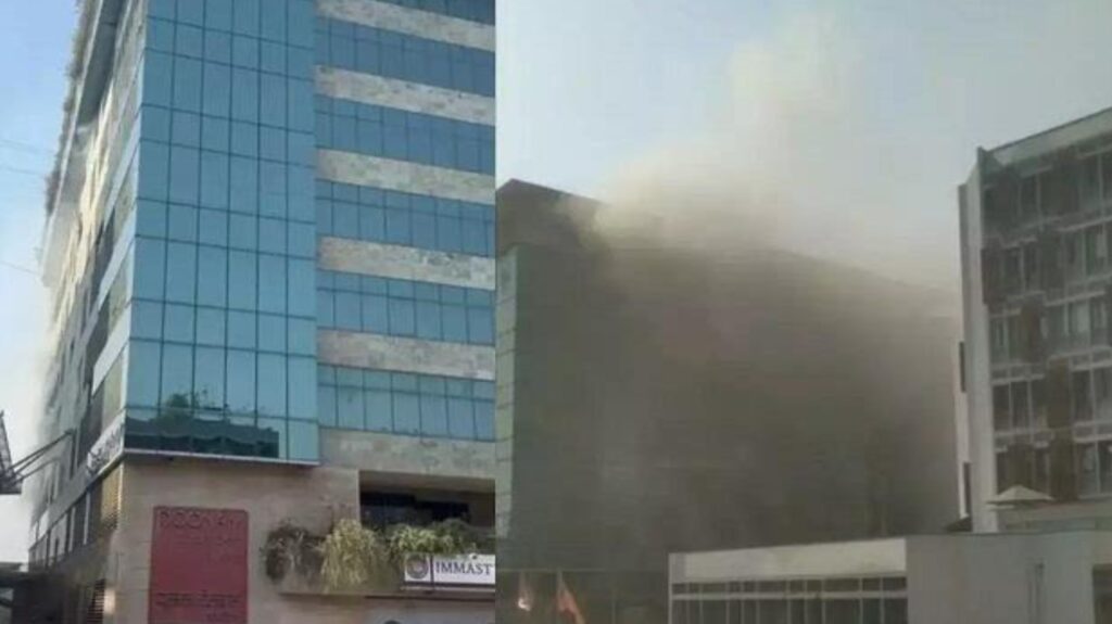 अग्निशमन दलाने ही आग दोन क्रमांकाची असल्याचे जाहीर केले आहे. काचेची तावदाने असलेली ही इमारत असून ज्या मजल्यावर आग लागली आहे तेथील तावदानामधून धूर बाहेर पडत होता.