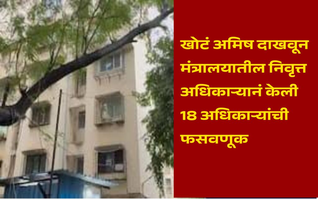 मुंबई – मंत्रालयातील सेवानिवृत्त उपसचिव राजेश शालिग्राम गोविल याने मुंबईतील १८ राज्य शासकीय अधिकारी आणि कर्मचाऱ्यांची तब्बल ₹२ कोटी ६१ लाख ५० हजार रुपयांची फसवणूक केल्याचा धक्कादायक प्रकार उघड झाला आहे. ‘पवईतील हिरानंदानी परिसरातील ब्लू बेल इमारतीतील शासकीय कोट्यातील घरे तुमच्या नावावर करून देतो’ असे आमिष दाखवून ही फसवणूक करण्यात आली. या प्रकरणी पवई पोलिस ठाण्यात गुन्हा नोंदवण्यात आला असून पुढील तपास सुरू आहे.