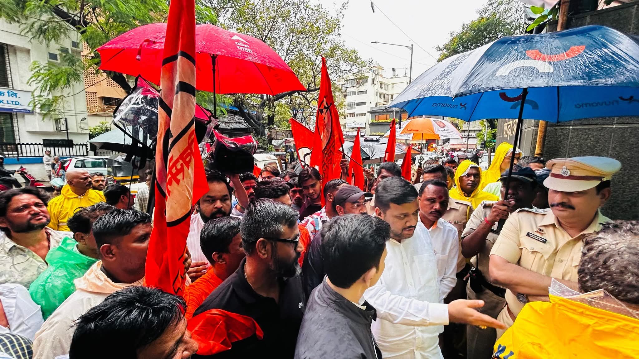 या आंदोलनात शेकडो शिवसैनिक सहभागी झाले होते. “जय महाराष्ट्र!” च्या घोषणांनी परिसर दणाणून गेला.