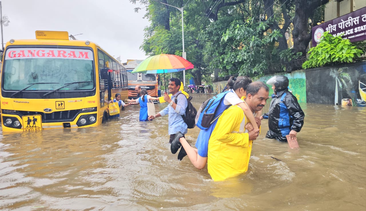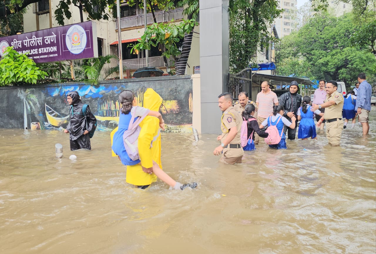 पावसामुळे मुंबईतील अनेक भागांमध्ये वाहतूक कोंडी झाली असून पालकांमध्येही चिंतेचं वातावरण आहे. मात्र, पोलिसांच्या तत्परतेमुळे विद्यार्थ्यांची सुरक्षित सुटका होऊन मोठा दिलासा मिळाला आहे.