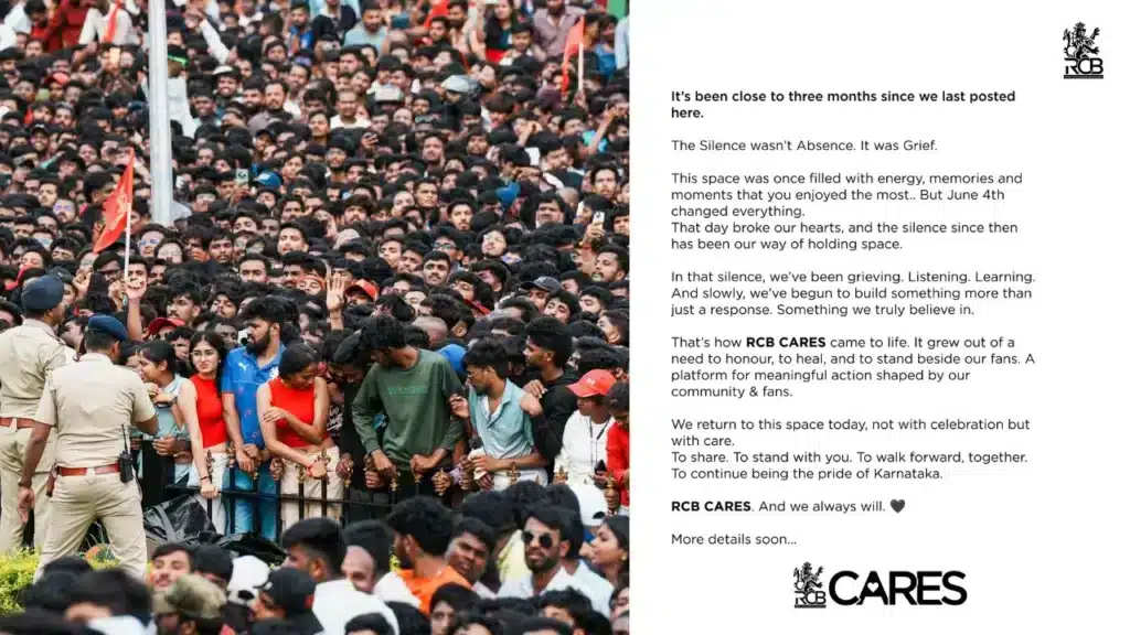 RCB ने यापूर्वी माफी मागून जखमींची काळजी घेतली जाईल असे सांगितले होते. मात्र, त्यानंतर जवळपास तीन महिने संघाने मौन बाळगले. अखेर शनिवारी संघाने भावनिक पत्रक प्रसिद्ध करून आर्थिक मदतीची घोषणा केली.