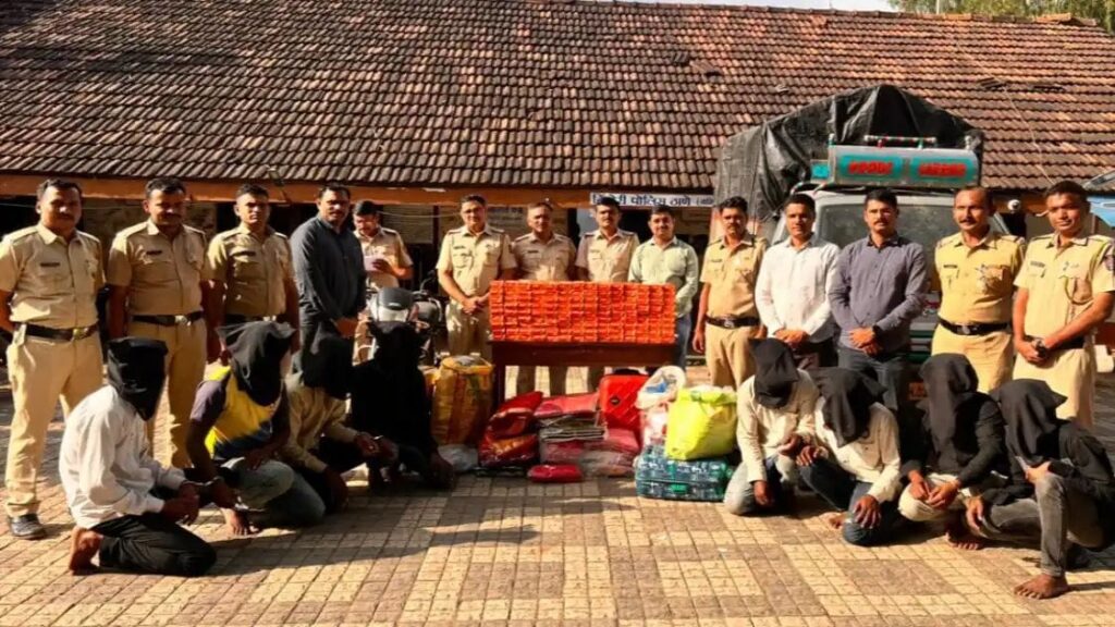 नाशिक-पेठ महामार्गावरील सावळा घाट परिसरात चालत्या वाहनांवर चढून माल लुटणाऱ्या सराईत टोळीला दिंडोरी पोलिसांनी जेरबंद केले. तब्बल आठ जणांना अटक करण्यात आली असून त्यांच्याकडून चोरीस गेलेला मुद्देमाल आणि वाहनं जप्त करण्यात आली आहेत.