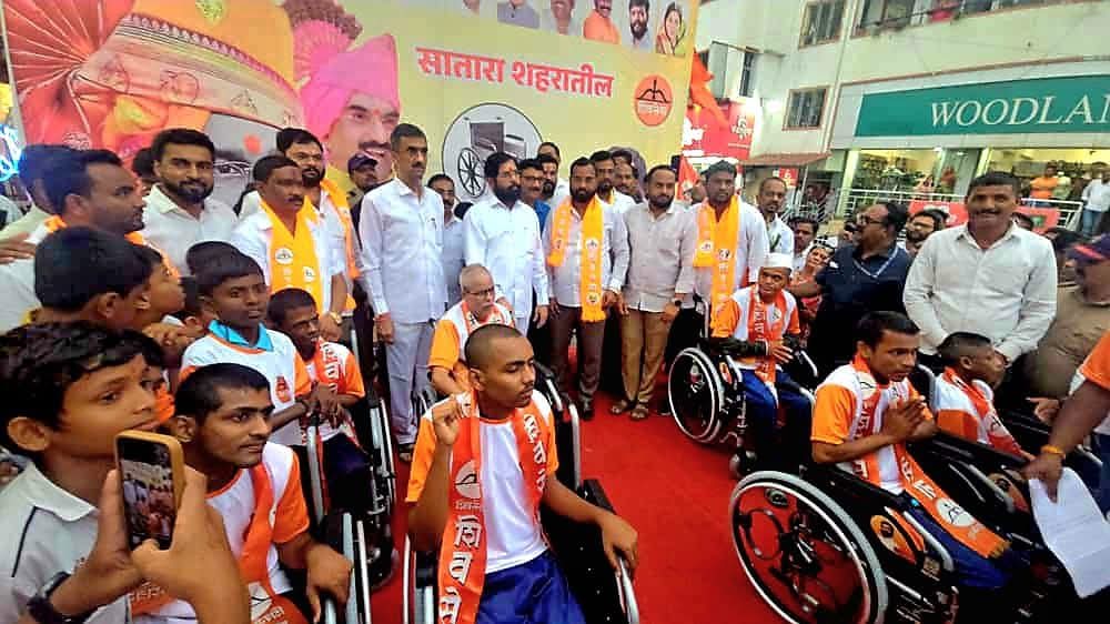 सातारा : राज्याचे उपमुख्यमंत्री मा. ना. एकनाथ शिंदे यांच्या हस्ते सातारा शहरातील दिव्यांग बांधवांना मोफत व्हिल चेअरचे वाटप करण्यात आले. शिवसेनेच्या ‘८०% समाजकारण आणि २०% राजकारण’ या विचारधारेतून हा भव्य सामाजिक उपक्रम पार पडला.