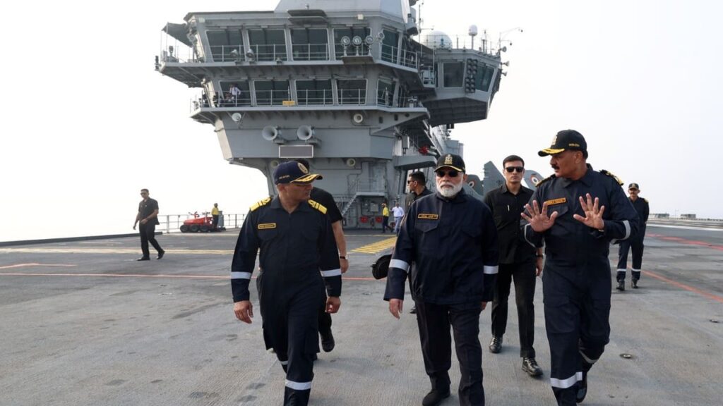 संरक्षण क्षेत्रातील स्वावलंबनावर भर देत मोदी म्हणाले, “गेल्या दशकात आपली सशस्त्र सेना जलद गतीने स्वावलंबी बनत आहे. हजारो वस्तू आता देशांतर्गत तयार केल्या जात आहेत. गेल्या ११ वर्षांत संरक्षण उत्पादन तिप्पट झाले आहे आणि दर ४० दिवसांनी एक नवी युद्धनौका किंवा पाणबुडी भारतीय नौदलात सामील होत आहे.”