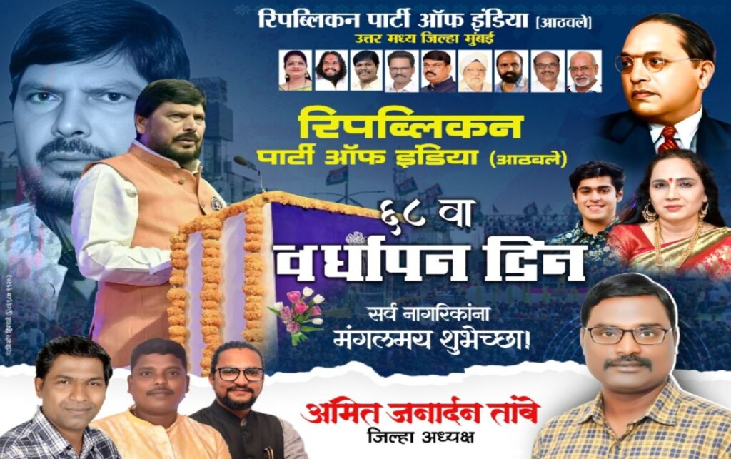 ‘रिपब्लिकन पार्टी ऑफ इंडिया’ (आठवले) पक्षाचा ६८ वा वर्धापन दिन उत्साहात साजरा होणार आहे.