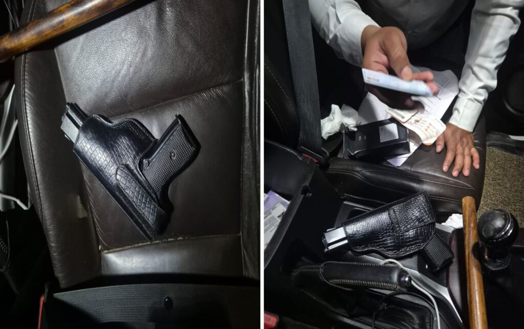 तपासणीदरम्यान कारचा समोरील दरवाजा अर्धवट उघडा आढळला. वाहनातून पिस्तूलसदृश शस्त्र मिळाले. तसेच ‘राजेंद्र निकम’ नावाचे ड्रायव्हिंग लायसन्सही सापडले. कोर्ट चेकर अॅपमधील पडताळणीने संबंधित व्यक्तीविरोधात मुंबई विभागात विविध गुन्हे दाखल असल्याचे स्पष्ट झाले.