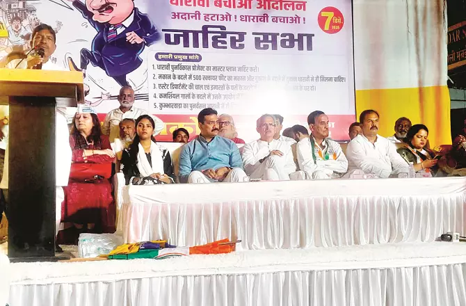 सभेत शिवसेना (ठाकरे) गटाचे खासदार अनिल देसाई, माकपचे प्रकाश रेड्डी, आपच्या प्रीती मेनन यांच्यासह विविध पक्षांचे नेते आणि धारावीतील हजारो नागरिक मोठ्या संख्येने सहभागी झाले.