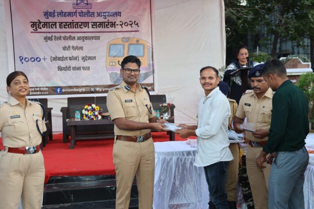 मुंबई : प्रवाशांच्या सुरक्षिततेसाठी आणि वाढत्या मोबाईल चोरीवर अंकुश ठेवण्यासाठी मुंबई रेल्वे पोलिसांनी राबवलेल्या ‘मोबाईल शोध’ मोहिमेला मोठे यश मिळाले आहे. तब्बल १,०१८ हरवलेले मोबाईल शोधून काढत त्यांचा १ कोटी ८० लाख ३३ हजार ६६८ रुपये किमतीचा मुद्देमाल मूळ मालकांना परत करण्यात आला. रेल्वे पोलिसांची ही कारवाई त्यांच्या दक्षतेचे आणि तंत्रज्ञानाधारित तपास क्षमतेचे ठळक उदाहरण ठरली आहे.