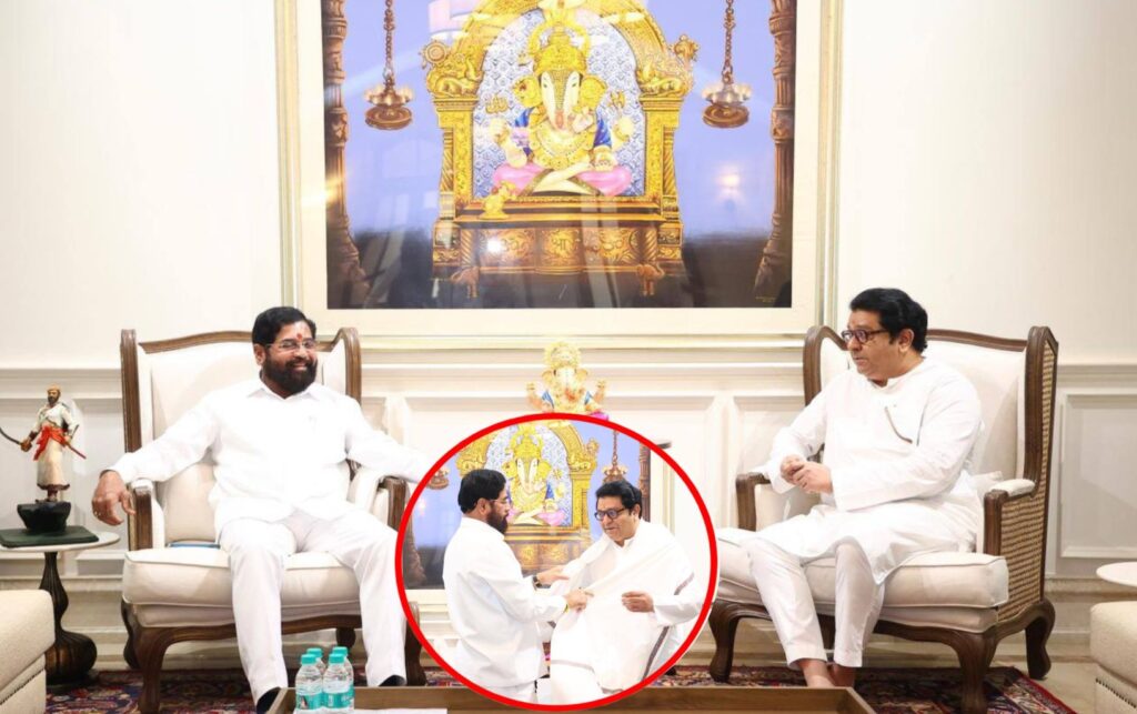 महाराष्ट्र नवनिर्माण सेनेचे अध्यक्ष राज ठाकरे यांनी बुधवारी उपमुख्यमंत्री एकनाथ शिंदे यांची ठाण्यातील ‘नंदनवन’ निवासस्थानी भेट घेतली. नुकत्याच पार पडलेल्या महानगरपालिका व जिल्हा परिषद निवडणुकांनंतर दोन्ही नेत्यांमध्ये झालेली ही पहिलीच प्रत्यक्ष भेट असल्याने राजकीय वर्तुळात चर्चांना उधाण आले आहे.