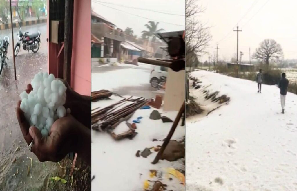 राज्यात एकीकडे उन्हाचा पारा दिवसेंदिवस चढत असतानाच दुसरीकडे अचानक बदललेल्या हवामानामुळे अनेक भागांत अवकाळी पाऊस आणि गारपीट झाली. पश्चिम महाराष्ट्र, मराठवाडा तसेच सीमावर्ती भागांमध्ये मंगळवारी जोरदार पावसासह मोठ्या प्रमाणात गारपीट झाल्याने काही ठिकाणी रस्त्यांवर अक्षरशः बर्फाची चादर पसरल्याचे चित्र पाहायला मिळाले. या अनोख्या वातावरणामुळे नागरिकांमध्ये कुतूहल निर्माण झाले असले, तरी दुसरीकडे शेतकऱ्यांच्या पिकांचे मोठे नुकसान झाले आहे.