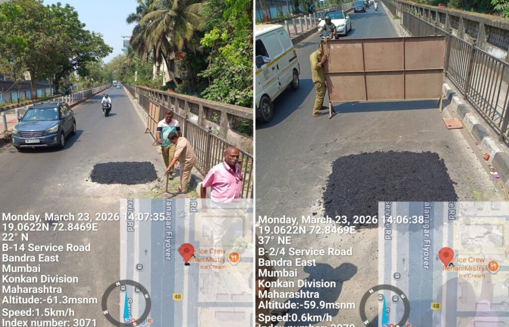 यानंतर महानगर टेलिफोन निगमच्या अधिकाऱ्यांनी घटनास्थळी पाहणी करून रस्त्यातील चेंबरची दुरुस्ती केली आणि धोकादायक खड्डा बुजवून रस्ता पूर्ववत करण्यात आला.
