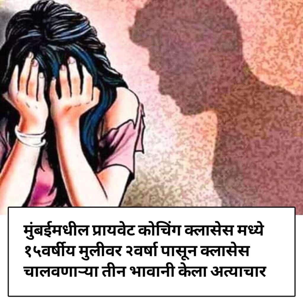 पोलिसांनी दिलेल्या अधिक माहितीनुसार, दक्षिण मुंबईत ही घटना घडली आहे. कोचिंग सेंटरमध्ये मला लेक्चर सुरू होण्याआधी लवकर बोलवलं जायचं. त्यानंतर क्लास संपल्यावर देखील जास्त वेळ थांबवून उशिरा सोडलं जायतं. तिन्ही सरांनी माझ्यावर लैंगिक अत्याचार केला असल्याचं या मुलीने म्हटलं आहे.