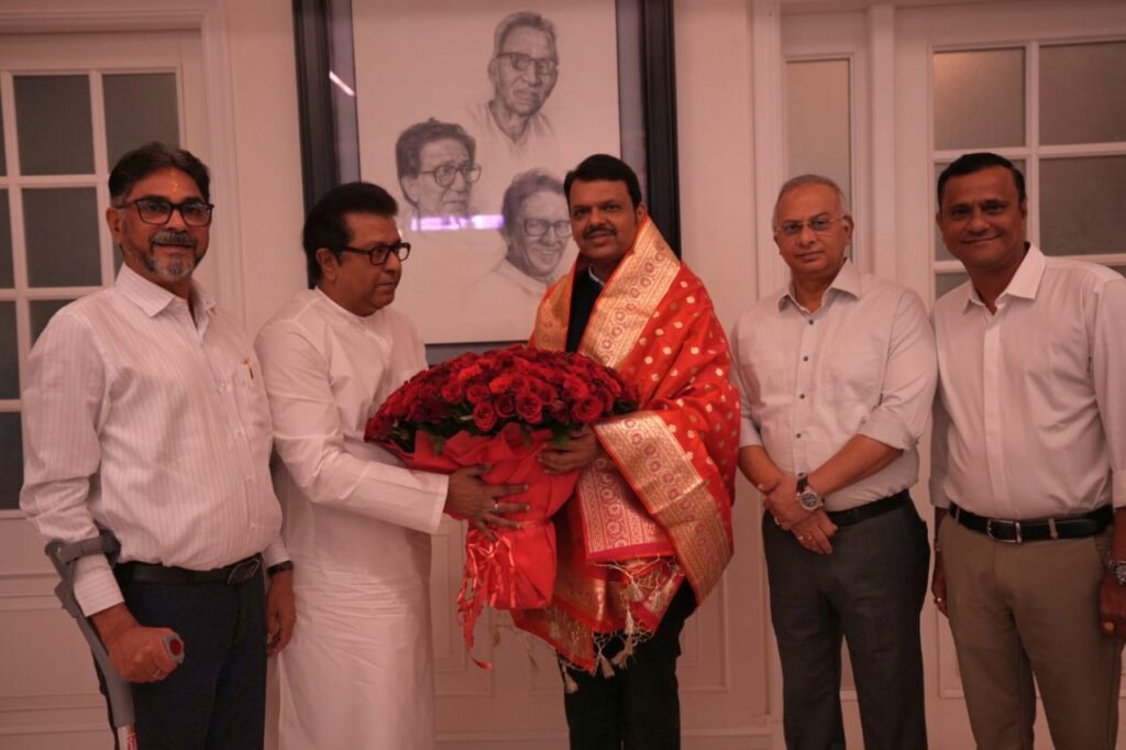 राज ठाकरे यांच्यासोबत कोणती चर्चा झाली असा प्रश्न मुख्यमंत्री देवेंद्र फडणवीस यांना विचारण्यात आला. त्यावेळी त्यांनी चर्चा तुम्हीच सुरू करता असे म्हटले. आज राज ठाकरेंसोबत झालेली भेट ही राजकीय भेट नसल्याचे मुख्यमंत्री फडणवीस यांनी म्हटले. मुख्यमंत्रीपदाची शपथ घेतल्यानंतर राज ठाकरे यांनी फोन करून अभिनंदन केले. त्यावेळी आपण भेटणार असल्याचे सांगितले. आज छत्रपती शिवाजी महाराज पार्कजवळ एक कार्यक्रम होता. त्याआधी राज यांची सदिच्छा भेट घेतली असल्याचे मुख्यमंत्र्यांनी स्पष्ट केले. राज यांच्यासोबत राजकीय विषयांवर चर्चा झाली नाही. त्यांच्या ब्रेक फास्ट केला, गप्पा मारल्या. या गप्पांना राजकीय संदर्भ नव्हते. निव्वळ मैत्रीतून ही भेट झाली असल्याचे मुख्यमंत्री देवेंद्र फडणवीस यांनी स्पष्ट केले.