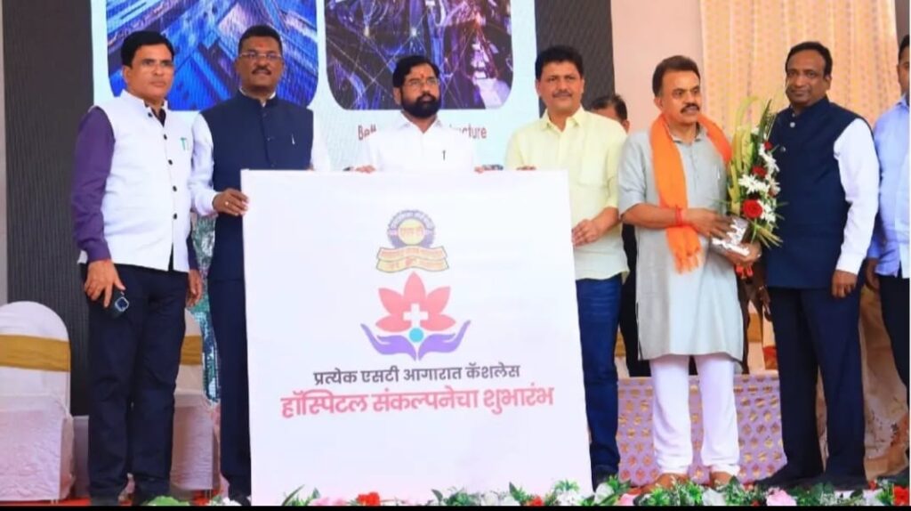 एसटी कर्मचारी आणि त्यांच्या कुटुंबियांच्या आरोग्याची काळजी घेण्यासाठी यापुढे राज्यभरात एसटी आगारात सार्वजनिक -खाजगी भागीदारीतून निर्माण होणाऱ्या प्रकल्पामध्ये ‘आगार तेथे १०० खाटांचे कॅशलेस रुग्णालय’ उभारण्याच्या संकल्प आहे. उपमुख्यमंत्री एकनाथ शिंदे यांच्या वाढदिवसा दिनी या योजनेचा आम्ही शुभारंभ करीत आहोत. भविष्यात या रुग्णालयांमध्ये शासनाच्या महात्मा फुले जन आरोग्य योजनेबरोबर विविध वैद्यकीय सेवा सुविधा मोफत एसटीच्या कर्मचाऱ्यांना उपलब्ध करून देण्यात येणार असून त्याचा फायदा त्या परिसरातील प्रवासी आणि सर्वसामान्य जनतेला देखील मिळणार आहे अशीही माहिती यावेळी परिवहन मंत्री प्रताप सरनाईक यांनी दिली.