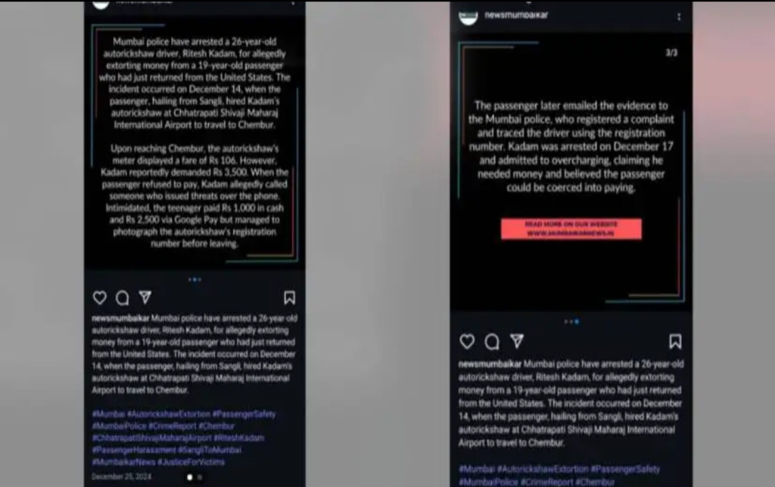 मुंबई ऑटो रिक्षा स्कॅम व्हायरल पोस्ट.