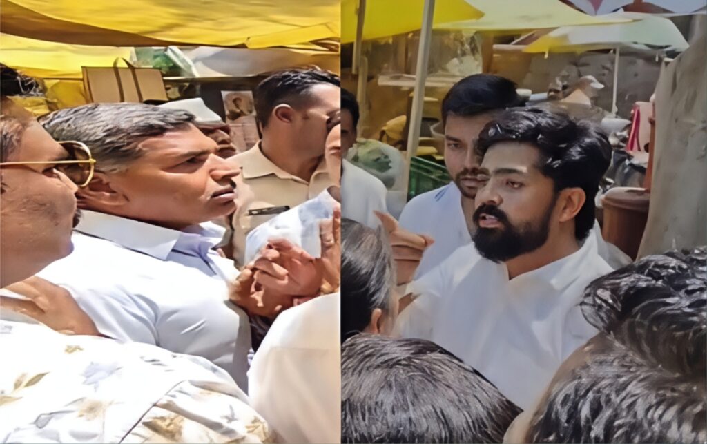 ही तक्रार आल्यानंतर पालिकेच्या अतिक्रमण हटाव विभागाचे प्रमुख प्रशांत निकम आणि पालिकेच्या कर्मचार्यांनी बुधवारी सकाळी घटनास्थळी धाव घेतली आणि पोलीस बंदोबस्तात ते अतिक्रमण हटवण्याचा प्रयत्न सुरू केला. शेतकऱ्यांची जागा मोकळी करून देण्यात आली. पण तेथील एका व्यापाऱ्याने वाद घालण्यास सुरूवात केली. नीट बोलायचं नाहीतर कापून टाकेन एकेकाला, गोळ्याच घालेन तुला अशा स्वरूपात त्या व्यापाऱ्याने सर्वांसमोरच शेतकरी संघटनेच्या नेत्याला थेट धमकी दिली. दहशत माजवण्याच्या उद्देशाने त्याने पोलिसांच्या समोरच ही थेट धमकी दिली, तेव्हा आजूबाजूच्या लोकांनाही धक्का बसला. मात्र तेव्हा पोलिसांनी फक्त बघ्याची भूमिका घेतली का असा प्रश्न सध्या उपस्थित होत आहे. खाकी वर्दी धारकांसमोरच थेट एखाद्याला संपवण्याची भाषा झाल्याने आश्चर्य व्यक्त होत आहे. जीवे मारण्याची धमकी देणाऱ्या या संबंधित व्यापाऱ्यावर कठोर कारवाई करण्यात यावी अशी मागणी स्वाभिमानी शेतकरी संघटनेकडून आणि सामान्य नागरिकांकडूनही करण्यात आली आहे.
