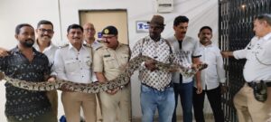 मुंबई प्रतिनिधी वांद्रे पश्चिम वाहतूक पोलीस चौकीत काही इसमाने गोणीतून अजगर साप आणल्याची माहिती मिळाली असता सर्प...