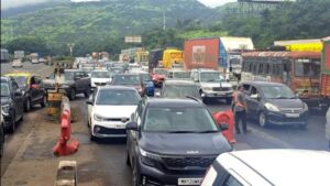 रायगड प्रतिनिधी मुंबई–पुणे द्रुतगती मार्गावर शुक्रवारी पुन्हा एकदा भीषण वाहतूक कोंडीचा सामना प्रवाशांना करावा लागला. मुंबईहून पुण्याच्या...